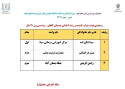 - مشارکت دانشگاه علوم پزشکی تبریز در برنامه ملی «جهش» برای ارتقای مرجعیت علمی کشور یکشنبه ۱۲ بهمن ۱۴۰۴