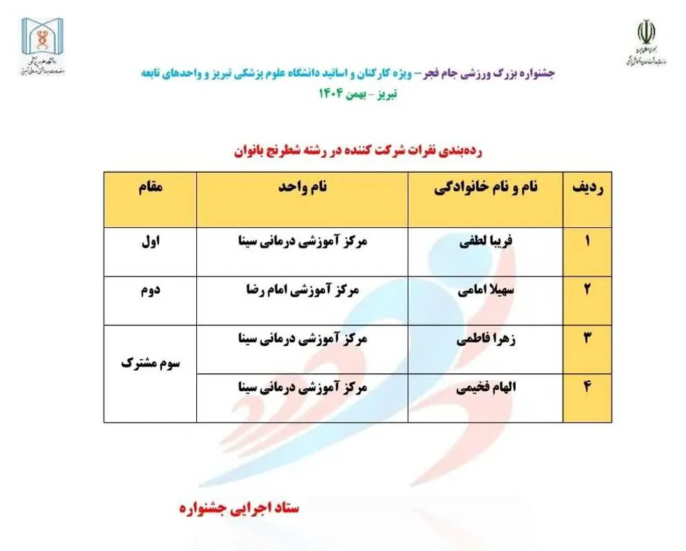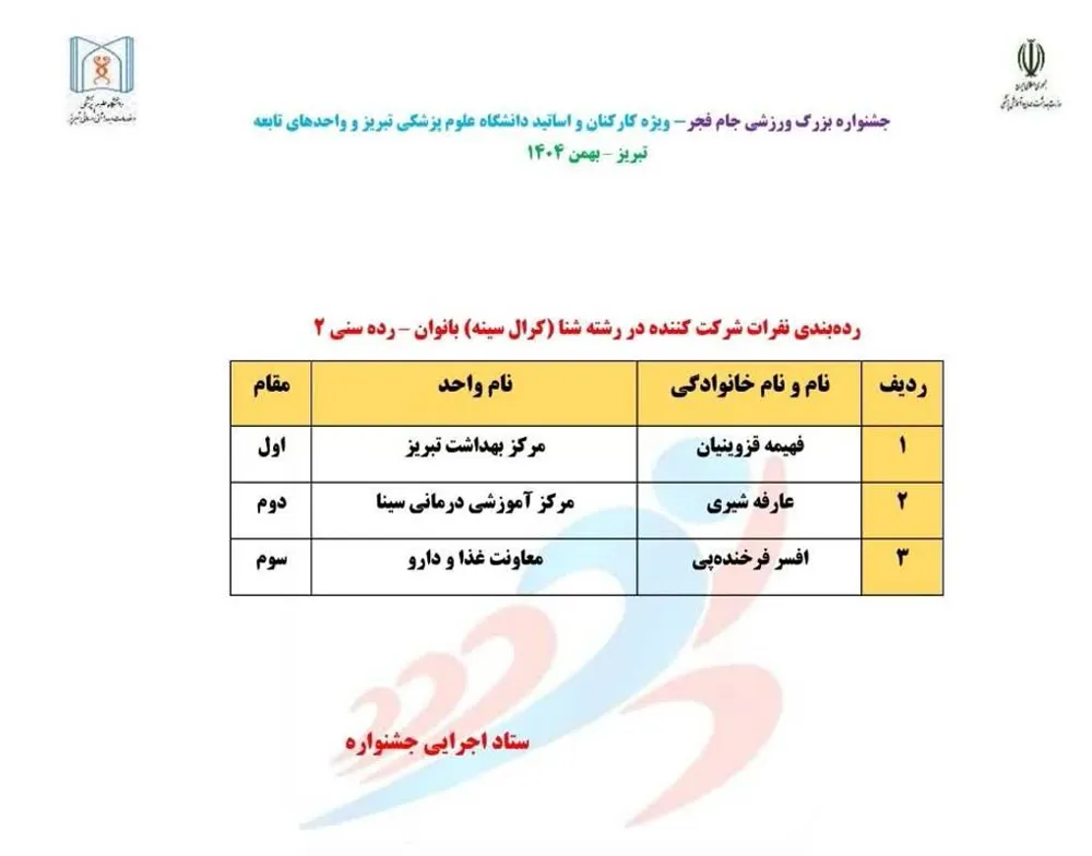 - برگزاری رویداد فرهنگی غذای سالم در شبکه بهداشت ودرمان شهرستان عجبشیر دوشنبه ۱۹ آبان ۱۴۰۴