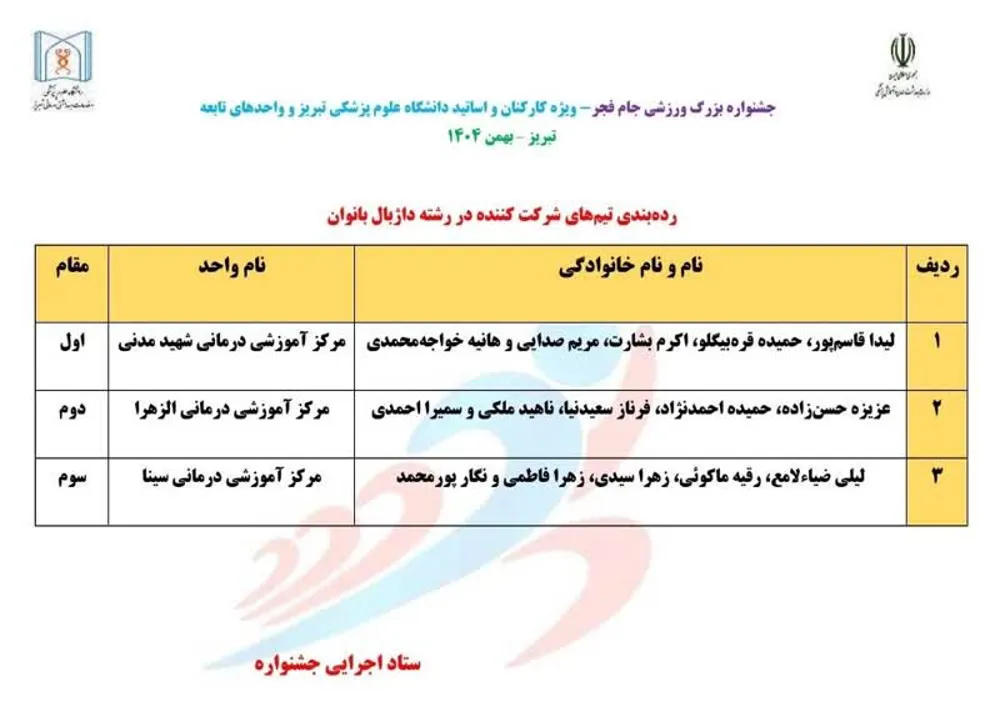 با کمال مسرت، موفقیت تیم های قهرمان مرکز سینا در کسب پیروزی مسابقات ورزشی جام فجر را به همکاران محترم تبریک گفته و این دستاورد ارزشمند را نمادی از اراده، پشتکار و سختکوشی همکاران میدانیم. برایتان آرزوی تداوم موفقیت داریم." 🇮🇷 روابطعمومی مرکز آموزشی پژوهشی درمانی سینا