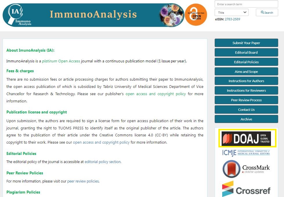 | 7 | Immunogenicity of Chitosan-Based Non-invasive Vaccine Strategy Against Mycobacterium tuberculosis | Original | Other | ImmunoAnalysis | 10.34172/ia.2023.02 | LINK |