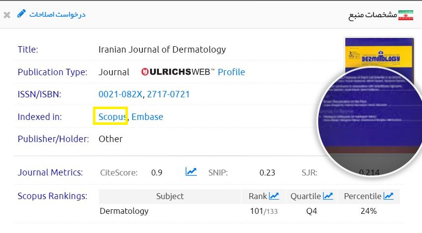 | 10 | Quality of life in patients with autoimmune bullous disorders: a cross-sectional study | Original | Scopus | Iranian Journal of Dermatology | 10.22034/IJD.2022.292311.1404 | LINK |