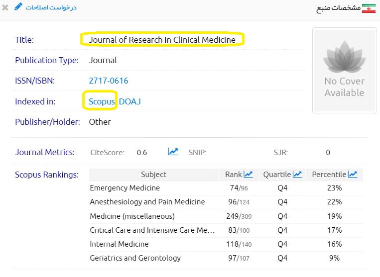 | 5 | Prevalence and Life-Threatening Electrocardiographic Changes in Aluminum Phosphide Poisoned Patients | Original | Scopus | Journal of Iranian Medical Council |