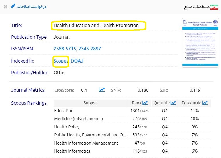 | 14 | Relationship between Health-Promoting Behaviors and Family Perceived Social Support in Type 2 Diabetes Patients | Original | Scopus | Health Education and Health Promotion |