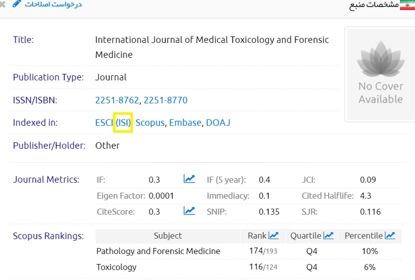 Original | ISI | International Journal of Medical Toxicology and Forensic Medicine |