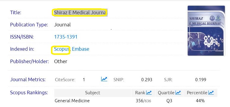 Original | Scopus | Shiraz E Medical Journal | In press | PDF نمایه |