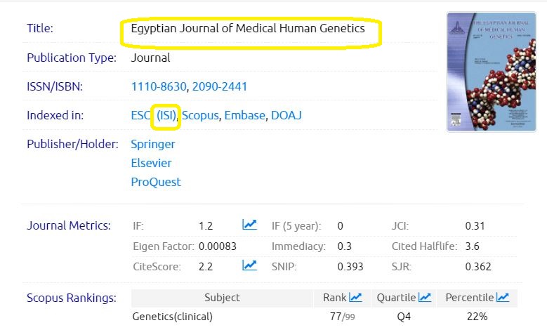 Original | ISI | Egyptian Journal of Medical Human Genetics |