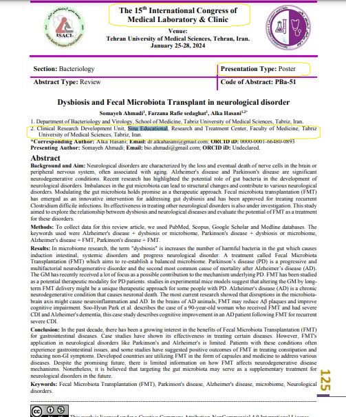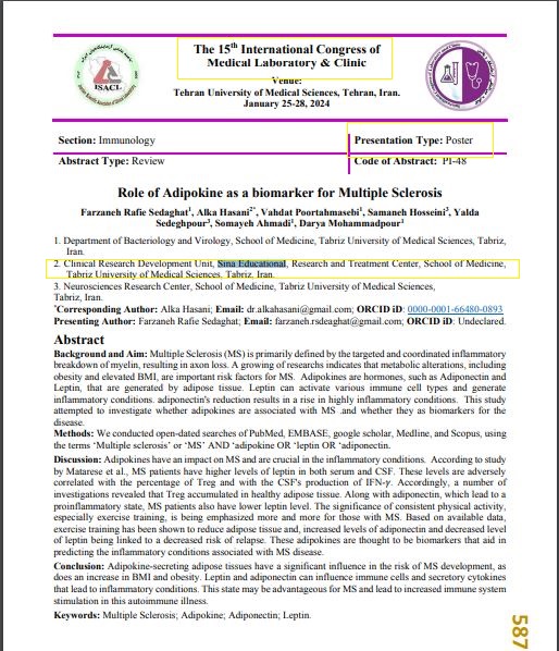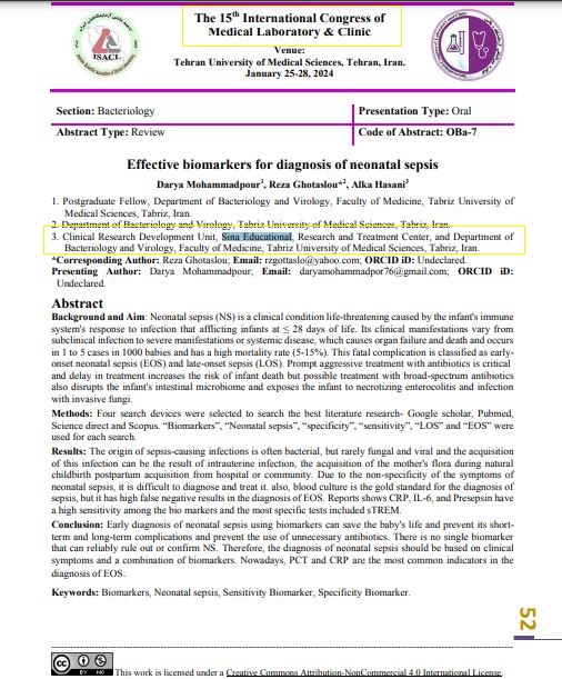 لیست مقالات ارائه شده در کنگره ها با همکاری واحد توسعه تحقیقات بالینی بیمارستان سینا در سال 1403