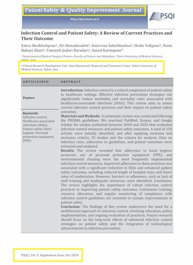Infection Control and Patient Safety: A Review of Current Practices and Their Outcome |