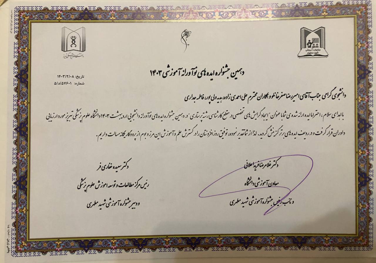 لیست فعالیتها و اقدامات نوآورانه در علوم پزشکی با همکاری واحد توسعه تحقیقات بالینی بیمارستان سینا دانشگاه علوم پزشکی تبریز در سال 1403/2024