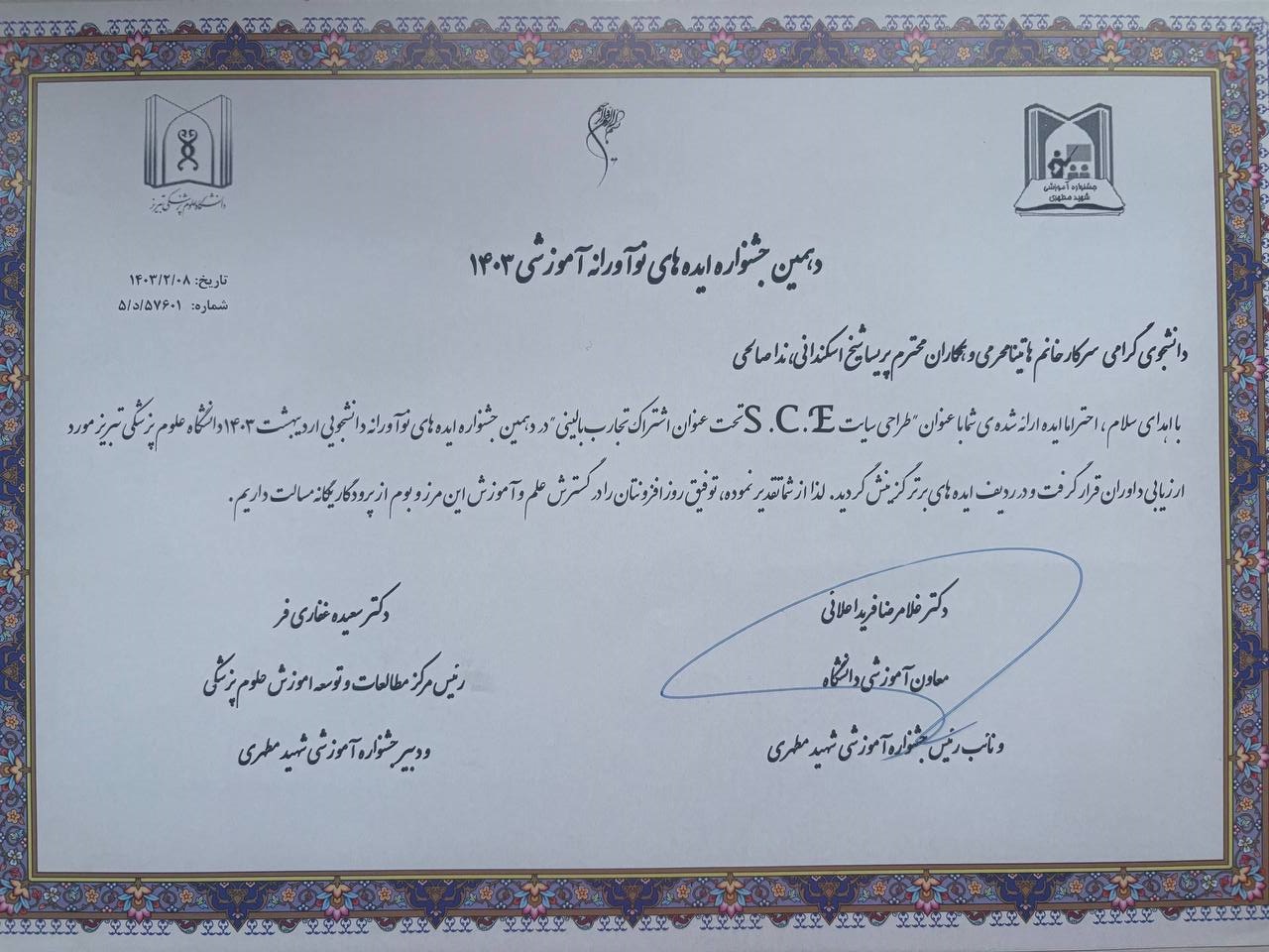 واحد توسعه تحقیقات بالینی بیمارستان سینا دانشگاه علوم پزشکی تبریز در سال 1403/2024